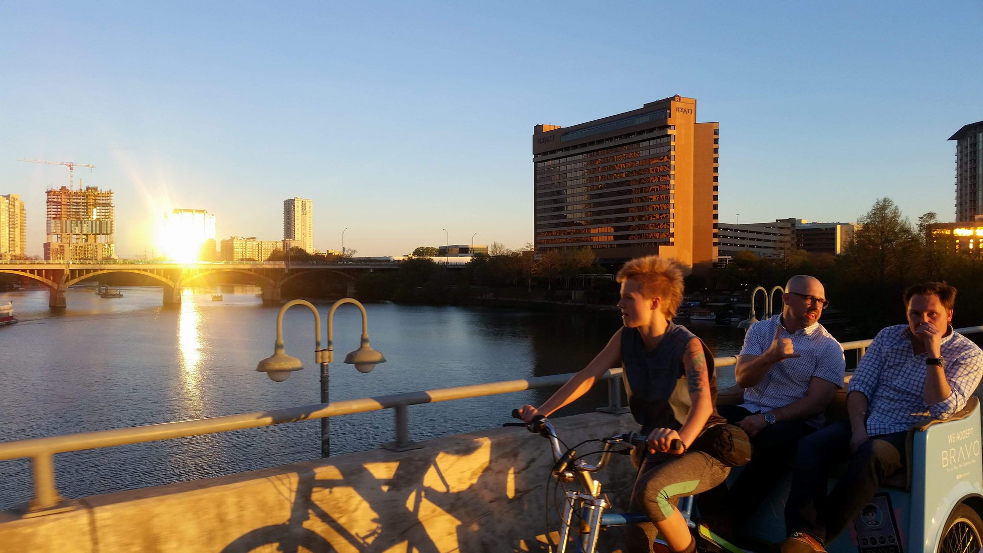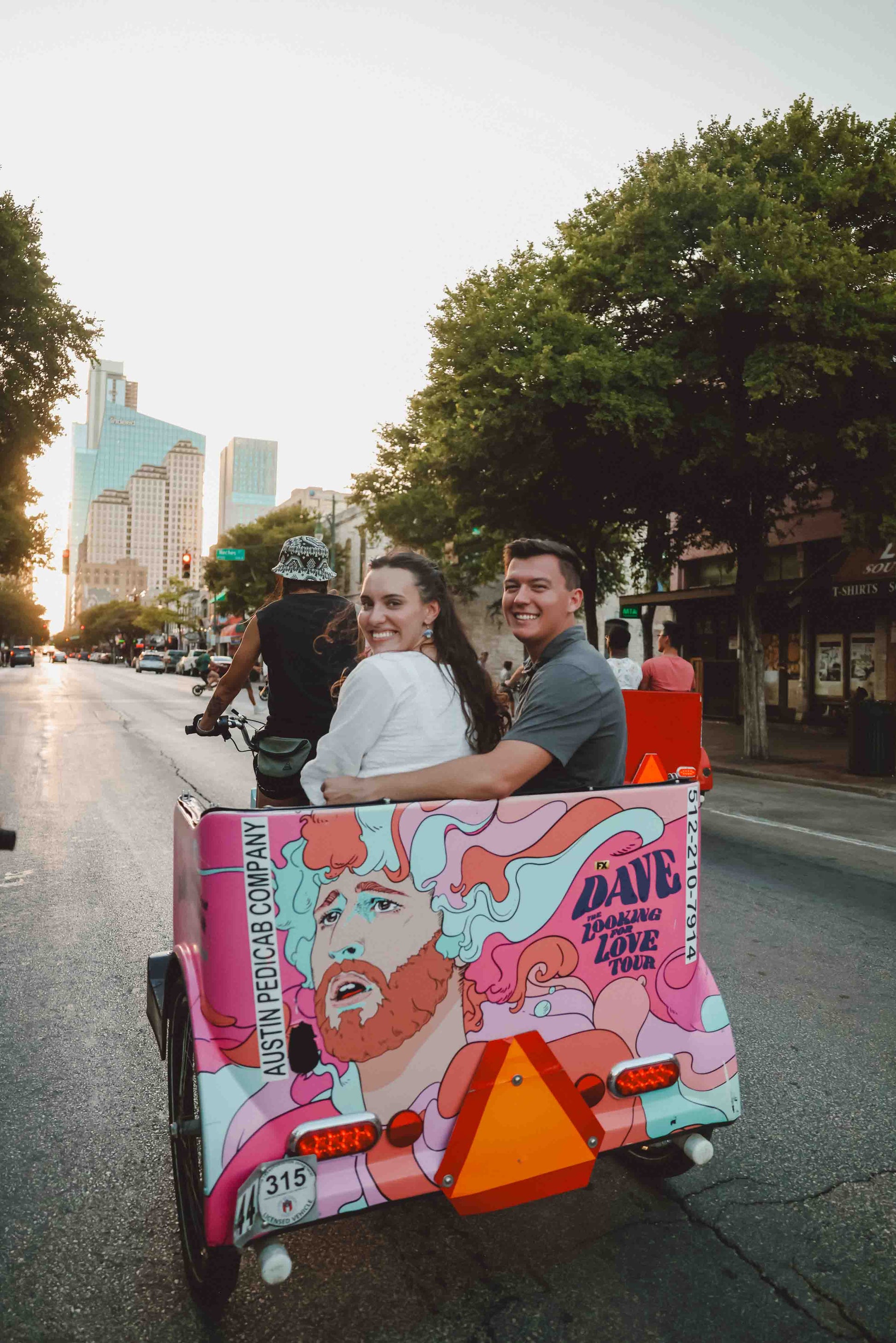 Explore Austin with us! Our motorized Pedicabs allow us to traverse the city swiftly, covering more ground in less time. Maneuvering where cars can't and moving faster than traditional bicycles, our Pedicabs offer a unique way to experience the city.
